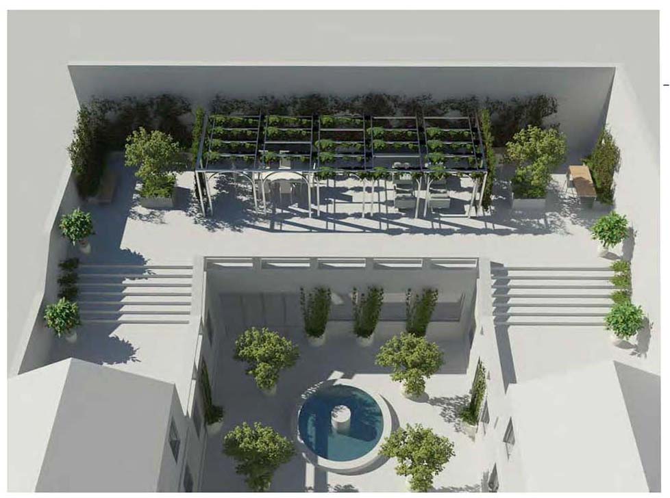 Un grande terrazzo annesso ad un edificio storico, utilizzato per…
